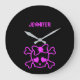 Relógio Grande Crânio feminino cor-de-rosa do emo com arco