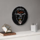 Relógio de motocicleta americano com crânio mecânico, ferramentas e dentro a crest de texto branco e laranja. Basta escolher seu estilo, tamanho e cor.