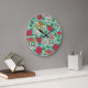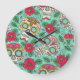 Relógio Grande Crânio mexicano e flores, sem costura.