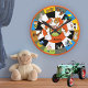 Um relógio colorido de parede com uma variedade de animais e crianças de desenho animado, arranjado por hora. Os números estão em um arquivo separado e podem ser excluídos se você não precisar deles. É um belo presente para uma criança adicionar ao seu quarto ou para uma criança aprender a ler um relógio.