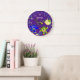 Um relógio de parede tão divertido para crianças com naves bonitinhas no espaço exterior, monstros de alienígena e o alfabeto correndo ao redor da borda. Um presente educacional excelente para aprender as letras do alfabeto e dizer o tempo.