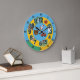 Um relógio de parede colorido e educativo concebido para salas de aula ou para crianças. Possui números grandes, fáceis de ler, marcas minúsculas e imagens adoráveis de animais e objetos que podem ser substituídas por suas próprias fotos. Perfeito por ajudar as crianças a aprender a dizer o tempo de uma forma divertida e envolvente. Faz um presente personalizado de excelente ou ferramenta educacional para casa ou escola.
