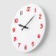Números vermelhos em uma face de relógio personalizável. Você pode alterar a cor de fundo ou adicionar uma imagem. Adicione texto ou uma foto para criar seu próprio design.