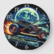Uma vintage vara quente ruge por uma rodovia sinuosa, chamas à deriva à medida que passa sob uma lua de cheio luminosa, lançando um brilho etéreo sobre a paisagem.