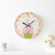 Um adorável relógio de cupcake rosa e verde que é perfeito para o quarto de uma menina. Arte original de Rebecca da Menagerie da Night Owl, 2012.