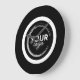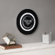 A simple, clean and minimal company logo round large wall clock featuring a custom logo set against a black background. Perfect for adding a professional branded touch to any work space or office. Simple to customize by adding your company logo, the background color can be changed if preferred.