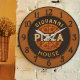 custom pizza personalized pizzeria restaurant clock, name your pizzeria clock, home kitchen pizza clock, pizza themed timepiece, custom food sign, pizza lover gift, rustic pizzeria wall clock