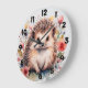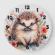 Cute hedgehog with Spring flowers large round clock. Great addition to a nursery, play area or kids' bedrooms