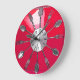 Hora da comida! Uma face vermelha e rosa do relógio feita de colheres e garfos. Que excelente é esse para um relógio de cozinha incrível! Veja a imagem da irmã azul 'Cutlery O'clock.'