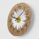 Flor margarida branca em fundo castanho-burlap com números. O plano de fundo pode ser editado.