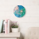 Relógio Grande Dandelion abstrato azul e verde