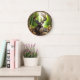 Melhore o encanto do seu espaço com nosso requintado relógio da parede de Deer apresentando um veado A único entre as árvores de uma floresta, coletando comidas e misturando-se ao seu habitat natural.