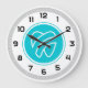 Um relógio profissional de parede dentária com uma imagem de dente para o consultório de um dentista, para o consultório dentário ou para o material dentário. Personalizado com suas informações sobre prática dentária.