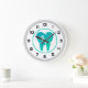 Um relógio profissional de parede dentária com uma imagem de dente para o consultório de um dentista, para o consultório dentário ou para o material dentário. Personalizado com suas informações sobre prática dentária.