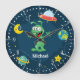 Desenhos animados estrangeiros da ilustração do monstro no espaço, uma ilustração estrangeira engraçada do monstro no espaço com foguetes e lua verde.