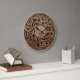 A design tradicional nativa americana redonda angustia-se ligeiramente por um olhar mais antigo contra um fundo de terracota. Perfeito para uma cabana, escritório ou toca.