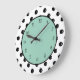 Os relógios modernos da parede do bolinhas têm padrões clássicos de bolinhas pretas e brancas e números de ricos na face do relógio nesta design de relógio decorativo da parede para a sua cozinha, casa de banho ou qualquer sala na sua casa onde você queira adicionar um moderno relógio da parede.