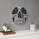 Cabeça de crânio, cara de crânio, feche o design de textura criativa gótica, preto e branco, ao redor do relógio analógico de parede. Diga o tempo com esta decoração caseira única. Legal, moderno, moderno, assustador estilo vintage. Imagem copyright Marg Seregelyi Photography.