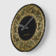 Relógio Grande Design Floral Preto E Dourado