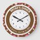 Esta design de retrô fofo para a cozinha da Mãe tem uma borda externa de marrom-chocolate com pontos cor-de-rosa e uma borda interna em marrom com texto que abre 24 horas e um centro branco.