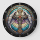 This magnificent wall clock showcases a detailed stained glass design of a cross with beautifully outstretched wings, rendered in a spectrum of soft blues, purples, and golden tones. The intricate patterns and ethereal glow create a truly inspiring and serene focal point, perfect for adding spiritual elegance to any home or sacred space. Edit color of the clocks numbers in the Design tool to your favored colors.