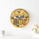 Este relógio de parede redondo deslumbrante apresenta uma ilustração digital vibrante em estilo 3D que celebra o charme da abelha melífera. O design exibe o trocadilho divertido "Sweet as can BEE" em letras grandes e texturizadas. A letra B apresenta um padrão de estampa de leopardo na moda, enquanto o E é preenchido com uma textura realista de favo de mel dourado. Abelhas de desenho animado adoráveis e roliças com bochechas rosadas e asas azuis voam ao redor do mostrador do relógio, acompanhadas por margaridas brancas crocantes e um mergulhador de mel de madeira pingando néctar dourado. O fundo é uma treliça de favo de mel amarelo detalhada que adiciona profundidade e caráter. Encaixado em uma moldura amarela brilhante, esta peça de decoração funcional