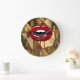 Relógio Grande Dourado Luxury Belo Grelha Lábios de Lixo Vermelho