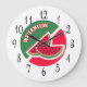 Círculo onde / é vermelho e o outro verde com linha branca separando diagonalmente as cores. Duas fatias de melancia com contorno branco estão ligeiramente afastadas do centro. "Melancia" está no canto superior esquerdo