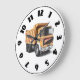 Um caminhão de lixo é algo em cada cidade. Esta design é de um caminhão de lixo grande. É da frente e levemente para trás. O caminhão é marrom. Este design de caminhão de lixo parece excelente neste relógio. Perfeito para si mesmo ou como presente