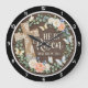 Celebrate a message of hope with the Easter Grace "He Is Risen" clock. This reverent timepiece features a high-definition graphic set against a dark, weathered wood-plank background. A prominent burlap-textured cross, adorned with delicate white lace patterns, stands as the focal point alongside the inspiring text "He Is Risen" and the scripture reference "Matthew 28:6". The design is beautifully framed by a lush circular wreath of soft white and peach roses, eucalyptus leaves, and fluttering light-blue butterflies. While the artwork masterfully replicates the dimensional textures of fabric lace, rustic timber, and fresh botanicals, this is a durable high-definition graphic application on a premium round clock face. It serves as a prestigious and meaningful addition to any home during the Lenten season or as a year-round statement of faith.