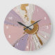 Uma pintura abstrato, textural, que inclui um elemento circular central de onde emanam traçados largos e radiantes de cor. A paleta é macia e luxuosa, dominada por tons de rosa-pincel, lavanda, branco e ouro cintilante. A tinta é aplicada com espessuras e pesadas, criando um sentido palpável de movimento e dimensão. Os feixes e gotas do ouro são espalhados pela superfície, adicionando uma qualidade dinâmica e preenchida com luz. A composição se assemelha a uma flor abstrata ou estelar, com as texturas ricas e os sotaques metálicos que lhe dão uma sensação sofisticada e elegante.