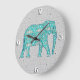 Relógio Grande Elefante de flor de Mandala - turquesa, cinza e br