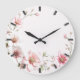 Relógio Grande Elegant Pink White Floral Wall Clock