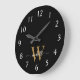 Relógio Grande Elegante Moderno Nome Monograma em Script Preto Do