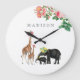 Relógio Grande Elephant & Giraffe Floral Custom Baby Name