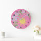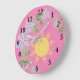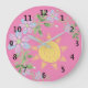 Este bonito relógio de parede rosa é perfeito para a sua creche ou sala de crianças. Um fundo rosa alegre complementa as flores azuis pastel com folhas verdes. Um pouco de sol em amarelo completa a design.