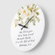 O relógio de parede com a escritura cristã inspiradora de aspas retrata uma bela flor de aquarela com flores brancas simples e verde. Ele apresenta um poderoso Verso Bíblia dos Ephesianos 2:8, "Pela Graça que você foi salvo, através da Fé, ... é o Presente de Deus"