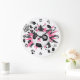 O relógio temático de futebol desta garota fofa apresenta uma "explosão" de bolas de futebol de tamanho variado e formas de estrelas cor-de-rosa, pretas e brancas com números de rosto do relógio ultrapassado - personalize o monograma e número de camisa do atleta - por katz_d_zynes
