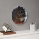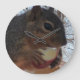 Um relógio com uma foto de um esquilo comendo uma maçã.