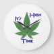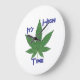 Está na hora. Certamente é, e este relógio do hip-time é uma maneira legal de anunciá-lo. Folha verde de ervas daninhas com texto violeta azul remendado com as palavras "É o tempo alto". Você entende, então. . Pegue-o.
