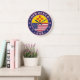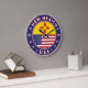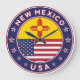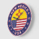 Crachá do Estado do Novo México com bandeira do Estado do Novo México e bandeira dos EUA cores, forma arredondada. Emblema do Estado do Novo México. Selo do Estado do Novo México. Coleção dos Estados Unidos.