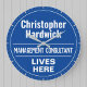 Estilo Comemorativo Divertido Presente em Parede na forma de Relógio de Parede para um Consultor de Gestão. Placa azul e branca. Edite a design para alterar o texto de acordo com o destinatário do presente.