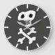 Crânio e bósforos no estilo de desenho animado é a decoração deste relógio que certamente será um item decorativo de excelente para qualquer quarto de pirata. Presente pirata.