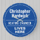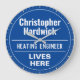 Estilo Comemorativo Divertido Presente em Parede na forma de Relógio de Parede para um Engenheiro de Aquecimento. Placa azul e branca. Edite a design para alterar o texto de acordo com o destinatário do presente.