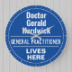 Estilo Comemorativo Divertido Presente em Parede na forma de Relógio de Parede para um Médico ou Médico-Geral. Placa azul e branca. Edite a design para alterar o texto de acordo com o destinatário do presente.