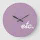 Este simples relógio sem número apresenta a abreviação de "et cetera" (latin: e o restante) em texto branco de script em uma cor de fundo de lavanda simples. É na moda, arte, moda, etc. Você também pode tentar usar o editor de personalização para combinar a cor do relógio com a sua mobília ou sala!