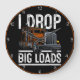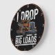 Este relógio de parede arrojado apresenta uma declaração humorística e confiante para qualquer caminhoneiro trabalhador. Contra um fundo preto com uma jante laranja-acastanhada, apresenta de forma destacada um grande caminhão laranja e o texto: "I DROP BIG LOADS". É um presente divertido e direto para um motorista que sabe seu valor e a impressionante escala de seu trabalho. A ferramenta design também pode ser usada para adicionar texto personalizado se você quiser seu nome ou empresa neste relógio. Você pode personalizar a cor do quadro para qualquer cor que desejar, entrando na ferramenta design.