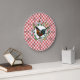 design de excelente apresenta fundo de xadrez vermelho-piquenique diagonal com a haste do eucalipto com aquarela e ilustração colorida do galo e face do relógio numeral romano