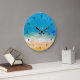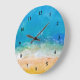 Uma aquarela tropical de uma praia com ondas intermitentes como um relógio de parede único. Aquarela por Daphsam.