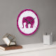 Relógio de Parede Elefante cor-de-rosa cinza com círculo branco e pontos pretos. Lindos brilhos brilhantes cor-de-rosa-quente brilham elefante. Foto de faíscas cor-de-rosa não é uma falha real!